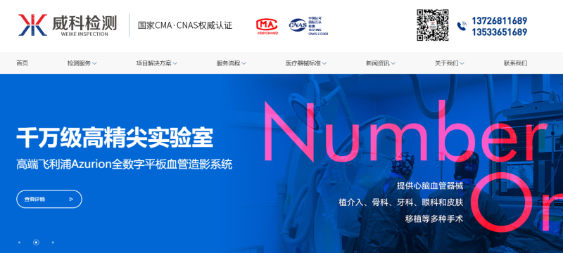 威科檢測(蘇州)有限公司隸屬于威科檢測集團,全國實驗室布局立足廣東,輻射北京、江蘇、重慶和上海,實驗室設有大動物實驗中心、醫(yī)療器械檢測中心、生物學評價中心、毒理實驗中心、病理實驗中心、微生物檢測中心、潔凈環(huán)境檢測中心和血液檢測中心,實驗室參照ISO/IEC 17025和GLP of OECD建立實驗室管理體系并獲有國家級CMA、省級CMA、CNAS資質認證以及動物使用許可證資質。并在廣州、江蘇、湖南、廣西、江西等地區(qū)建設多個全資子公司。威科依據(jù)CNAS-CL01:2018《檢測和校準實驗室能力認可準則》及相關認可應用準則、《檢驗檢測機構資質認定能力評價 檢驗檢測機構通用要求》、《檢驗檢測機構資質認定能力評價 醫(yī)療器械檢驗機構要求》建立質量管理體系,依照GLP準則管理要求運行動物實驗室,取得CNAS實驗室認可資質,國家CMA資質,廣東省CMA資質和動物使用許可證資質。威科檢測具有專業(yè)的檢驗技術團隊和業(yè)務運營團隊,配置了先進精準的檢測設備,實驗室面積約11000平方米,環(huán)境設施包括大動物實驗中心、SPF級動物房、病理檢測室、化學表征分析實驗室、微生物實驗室、醫(yī)療器械性能檢測實驗室等。威科檢測專注于生物醫(yī)藥檢驗領域,提供生物學評價試驗、大動物實驗研究、化學表征測試、微生物檢測、消毒滅菌驗證、理化性能檢測、潔凈室檢測、包裝驗證、老化試驗、運輸實驗、體系認證等服務,致力于共創(chuàng)生物醫(yī)藥檢測服務創(chuàng)新平臺,促進醫(yī)療器械產(chǎn)業(yè)實現(xiàn)高質量發(fā)展。