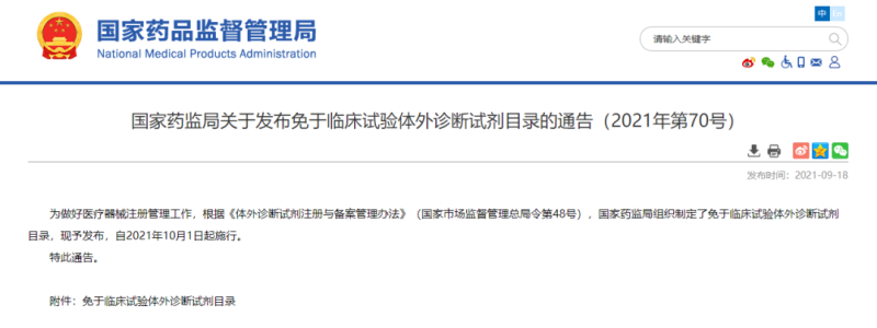 2021年9月,國家藥監(jiān)局發(fā)布《免于臨床試驗(yàn)體外診斷試劑目錄(2021年)》,其中共包括423種體外診斷試劑產(chǎn)品。