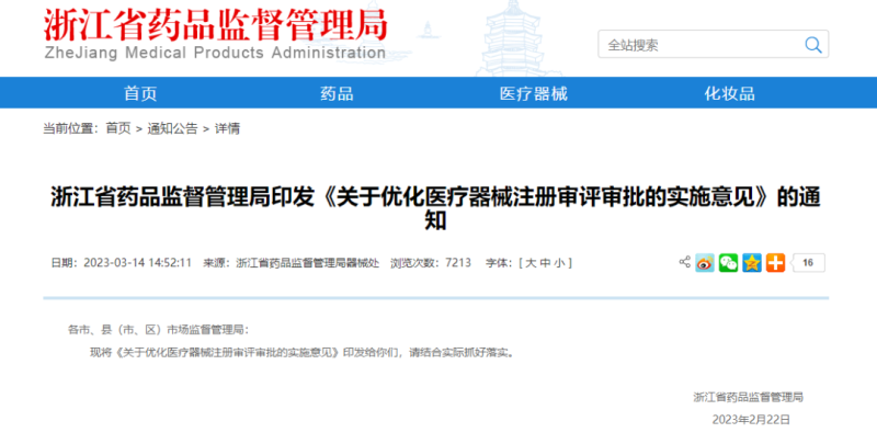 3月14日,浙江省藥監(jiān)局官網(wǎng)發(fā)布《關(guān)于優(yōu)化醫(yī)療器械注冊審評審批的實(shí)施意見》,具體內(nèi)容如下:
