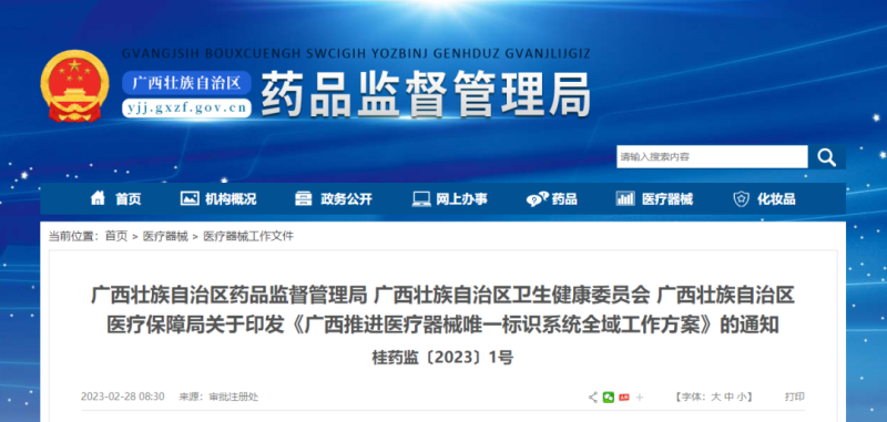 近日,廣西壯族自治區(qū)藥品監(jiān)督管理局、自治區(qū)衛(wèi)生健康委員會(huì)、自治區(qū)醫(yī)療保障局聯(lián)合印發(fā)《廣西推進(jìn)醫(yī)療器械唯一標(biāo)識(shí)系統(tǒng)全域工作方案》(以下簡(jiǎn)稱《方案》),加快推進(jìn)醫(yī)療器械唯一標(biāo)識(shí)實(shí)施及全域應(yīng)用。
