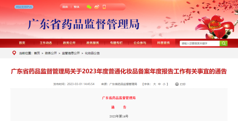 3月1日,廣東省藥監(jiān)局官網(wǎng)發(fā)布《關(guān)于2023年度普通化妝品備案年度報告工作有關(guān)事宜的通告》,其中指出,自2022年1月1日起,普通化妝品備案人應(yīng)當(dāng)于每年1月1日至3月31日期間,通過新注冊備案平臺,提交備案時間滿一年普通化妝品的年度報告。2023年度備案年度報告工作已于2023年1月1日開始,將于2023年3月31日結(jié)束。2021年12月31日前備案的產(chǎn)品應(yīng)當(dāng)開展2023年度備案年度報告工作。