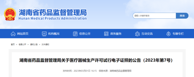 3月1日,湖南藥監(jiān)局官網(wǎng)發(fā)布《關(guān)于醫(yī)療器械生產(chǎn)許可試行電子證照的公告》,具體內(nèi)容如下: