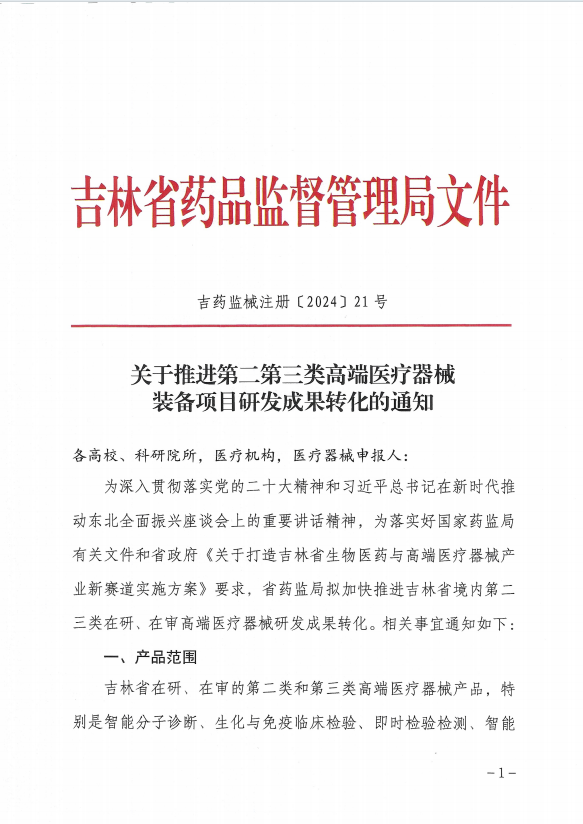 2月27日,吉林省藥監(jiān)局發(fā)布《關(guān)于推進(jìn)第二第三類(lèi)高端醫(yī)療器械裝備項(xiàng)目研發(fā)成果轉(zhuǎn)化的通知》(以下簡(jiǎn)稱(chēng)《通知》),擬加快推進(jìn)吉林省境內(nèi)第二三類(lèi)在研、在審高端醫(yī)療器械研發(fā)成果轉(zhuǎn)化。