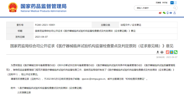4月7日,國家藥監(jiān)局官網(wǎng)發(fā)布《醫(yī)療器械臨床試驗機構監(jiān)督檢查要點及判定原則(征求意見稿)》(以下簡稱《檢查要點》),并向社會公開征求意見。