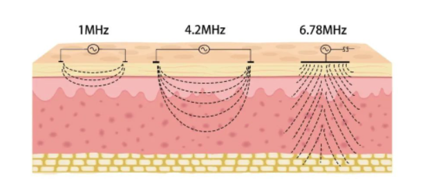 ? 頻率與作用深度示意圖(不同頻率的射頻美容儀產(chǎn)品)