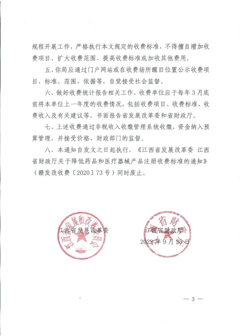 近日,江西省發(fā)展和改革委員會官網(wǎng)發(fā)布《江西省發(fā)展改革委江西省財政廳關(guān)于降低藥品和醫(yī)療器械產(chǎn)品注冊收費(fèi)的復(fù)函》,其中指出,藥品、醫(yī)療器械產(chǎn)品注冊收費(fèi)標(biāo)準(zhǔn)按現(xiàn)行規(guī)定標(biāo)準(zhǔn)的70%收取,調(diào)整后具體標(biāo)準(zhǔn)如下: