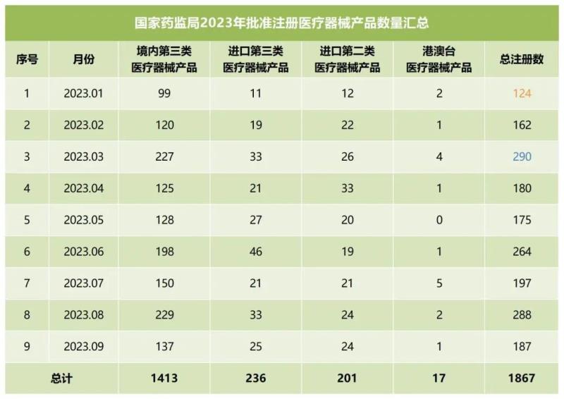 截至9月底,國(guó)家藥監(jiān)局2023年已批準(zhǔn)注冊(cè)醫(yī)療器械產(chǎn)品1867個(gè)