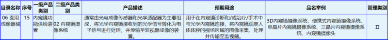 醫(yī)用內(nèi)窺鏡攝像系統(tǒng)是用于內(nèi)窺鏡檢查和手術(shù)中的內(nèi)窺鏡功能供給裝置,其分類編碼為06-15-02。