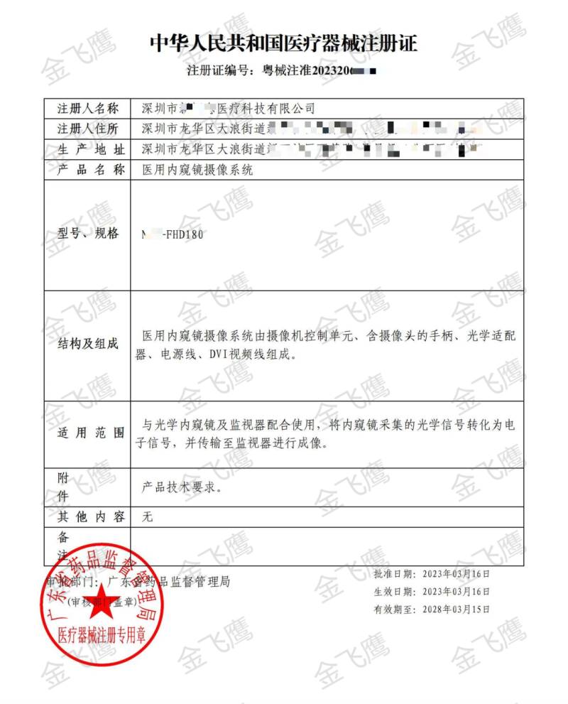 隨著醫(yī)療技術(shù)的快速發(fā)展,內(nèi)窺鏡在疾病檢查、微創(chuàng)手術(shù)中應(yīng)用極為廣泛,與之配套的器械&設(shè)備也層出不窮。近日,金飛鷹輔導(dǎo)的深圳一家企業(yè)成功取得了醫(yī)用內(nèi)窺鏡攝像系統(tǒng)的注冊證,如下圖?