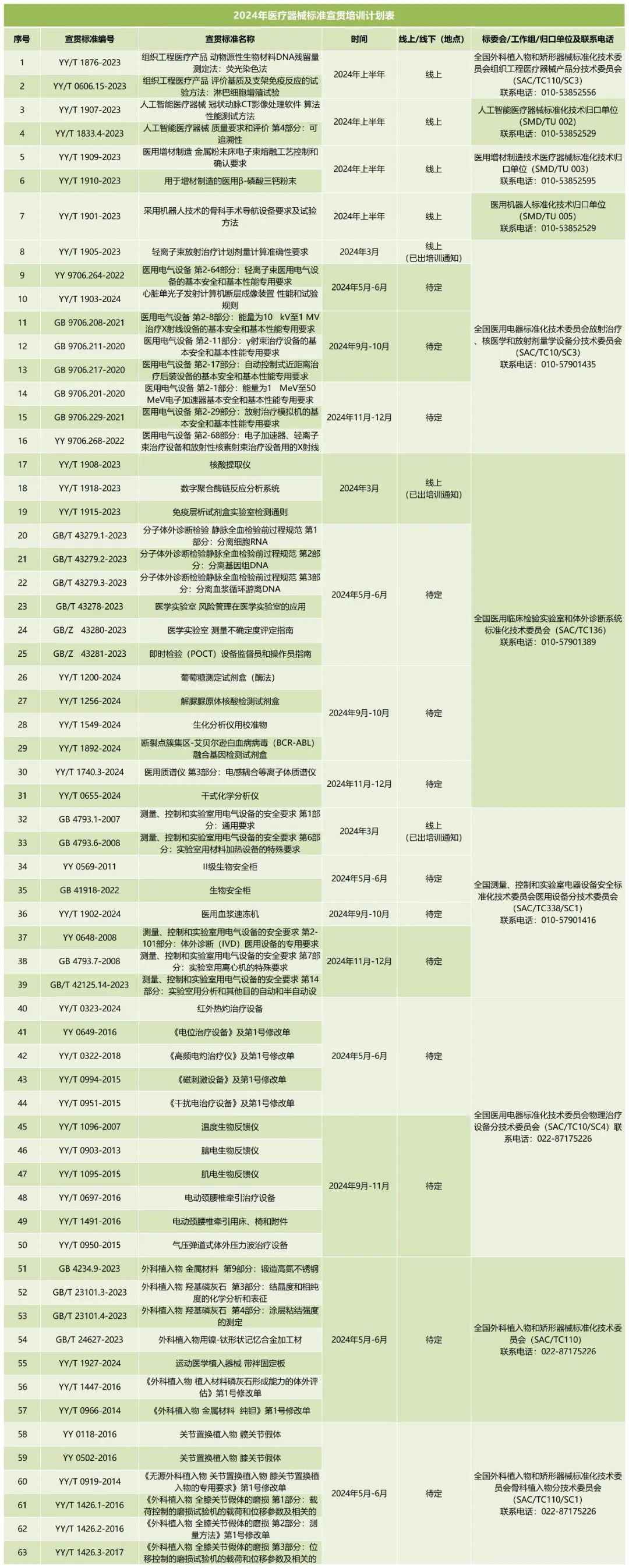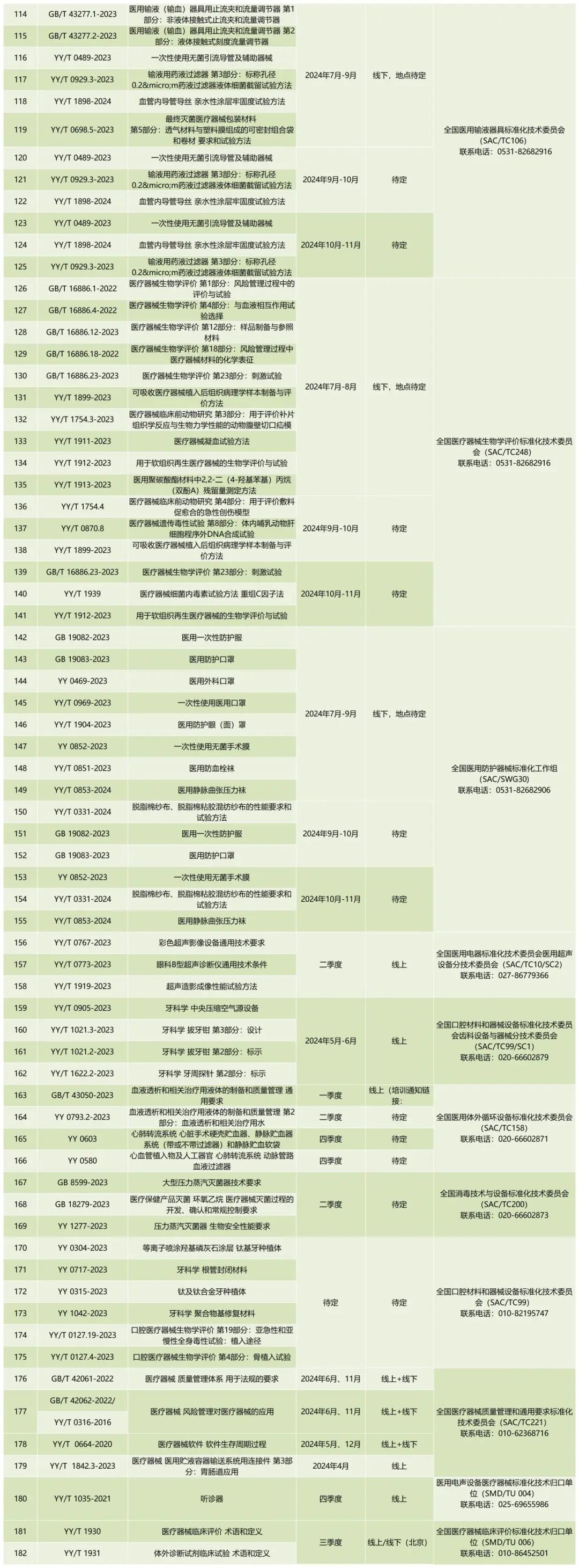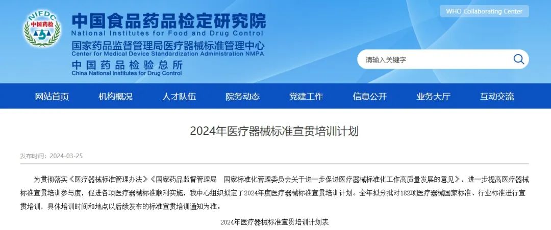 3月25日,國家藥監(jiān)局醫(yī)療器械標(biāo)準(zhǔn)管理中心發(fā)布《2024年醫(yī)療器械標(biāo)準(zhǔn)宣貫培訓(xùn)計劃》,擬分批對182項醫(yī)療器械國家標(biāo)準(zhǔn)、行業(yè)標(biāo)準(zhǔn)進(jìn)行宣貫培訓(xùn),具體安排如下: