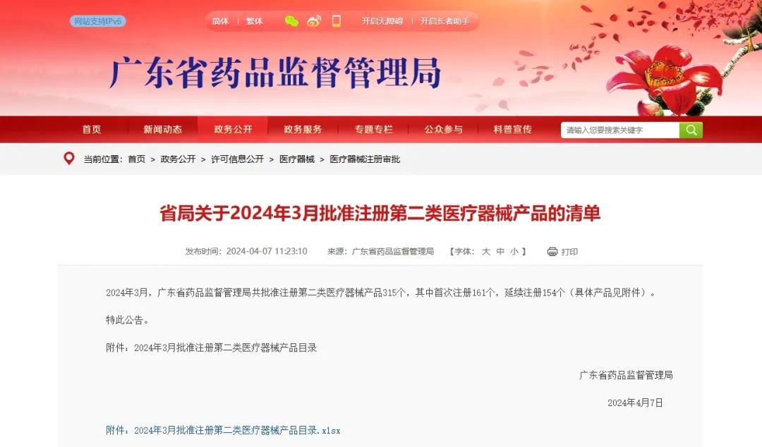 截至3月底,廣東藥監(jiān)局2024年已批準(zhǔn)注冊(cè)醫(yī)療器械803個(gè)