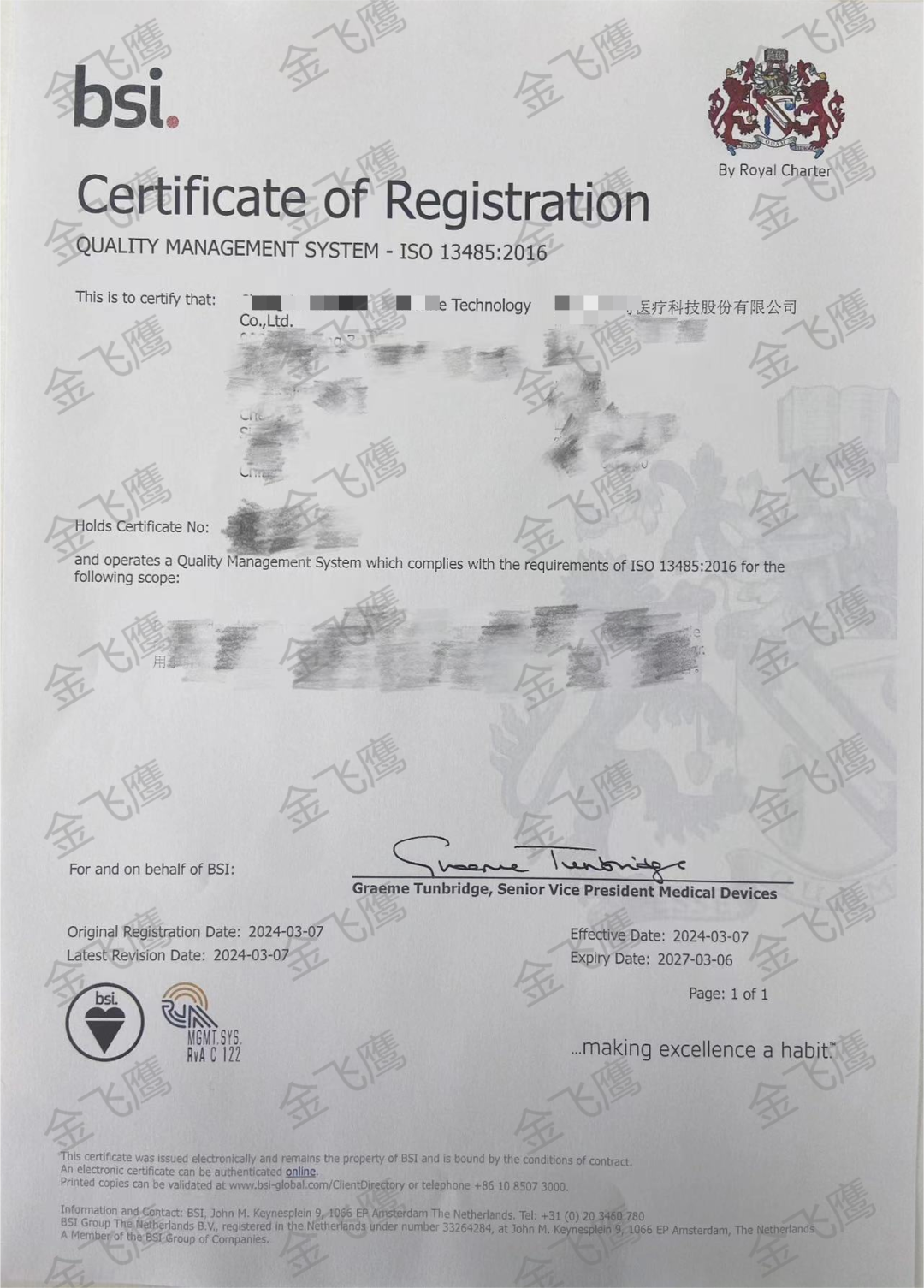 近日,金飛鷹成功輔導成都一家企業(yè)完成歐盟Ⅲ類植入醫(yī)療器械產品的ISO 13485認證,該公司是由行業(yè)領軍院士創(chuàng)建的成都重大專項IPO準上市公司,目前已完成多輪融資。