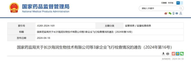 4月18日,國家藥監(jiān)局發(fā)布通告稱,近期組織對(duì)長(zhǎng)沙海潤(rùn)生物技術(shù)有限公司等3家企業(yè)進(jìn)行飛行檢查,發(fā)現(xiàn)這些企業(yè)質(zhì)量管理體系主要存在以下缺陷: