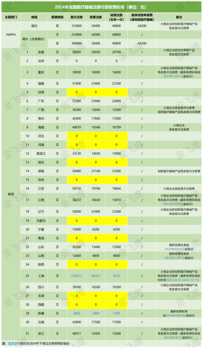 經(jīng)常關(guān)注我們的朋友也許還記得,2023年,山東、山西、江西等省份也分別調(diào)整了醫(yī)療器械注冊行政收費,那么本期文章我們就將2024年最新的【全國各省醫(yī)療器械注冊行政收費】匯總整理如下圖,大家記得收藏備用哦!