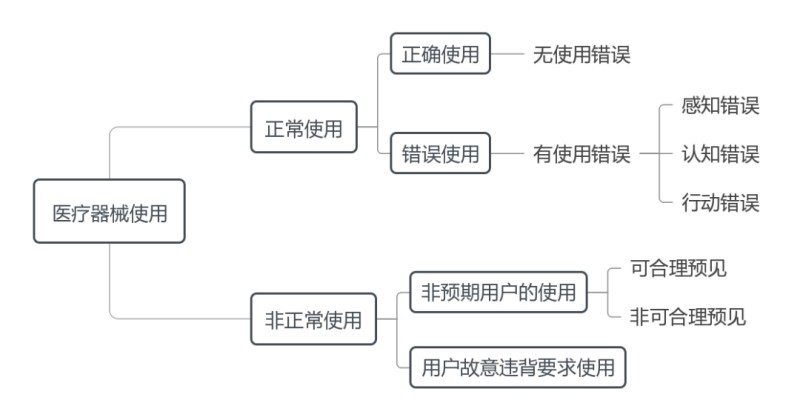 首先我們來(lái)明確一下到底什么是“使用錯(cuò)誤”。醫(yī)療器械使用情況可分為正常使用非正常使用,“使用錯(cuò)誤”屬于正常使用中的一種情形,即用戶按照說(shuō)明書要求及常識(shí)慣例操作醫(yī)療器械,但卻因?yàn)楦兄蛐袆?dòng)上的失誤等出現(xiàn)了異于注冊(cè)申請(qǐng)人或用戶預(yù)期的醫(yī)療器械效應(yīng),可能降低醫(yī)療器械的安全有效性。