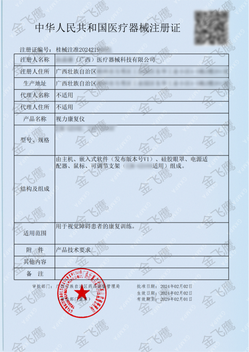 日前,金飛鷹輔導(dǎo)廣西一家企業(yè)成功取得【視力康復(fù)儀的注冊證,老規(guī)矩,本期文章就跟大家分享一下視力康復(fù)儀注冊的相關(guān)事項(xiàng)。