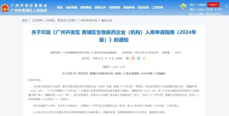 近日,廣州市黃埔區(qū)人民政府發(fā)布《廣州開發(fā)區(qū) 黃埔區(qū)生物醫(yī)藥企業(yè)(機(jī)構(gòu))入庫申請(qǐng)指南(2024年版)》,其中提到,申請(qǐng)單位應(yīng)符合以下條件:
