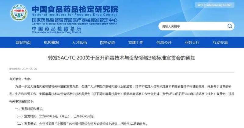 5月6日,國家藥監(jiān)局醫(yī)療器械標(biāo)準(zhǔn)管理中心轉(zhuǎn)發(fā)了《SAC/TC 200關(guān)于召開消毒技術(shù)與設(shè)備領(lǐng)域3項(xiàng)標(biāo)準(zhǔn)宣貫會(huì)的通知,其中提到,全國消毒技術(shù)與設(shè)備標(biāo)準(zhǔn)化技術(shù)委員會(huì)擬于2024年5月24日舉辦相關(guān)標(biāo)準(zhǔn)宣貫培訓(xùn),培訓(xùn)內(nèi)容為GB 18279-2023《醫(yī)療保健產(chǎn)品滅菌 環(huán)氧乙烷  醫(yī)療器械滅菌過程的開發(fā)、確認(rèn)和常規(guī)控制的要求》3項(xiàng)標(biāo)準(zhǔn)解讀,具體如下: