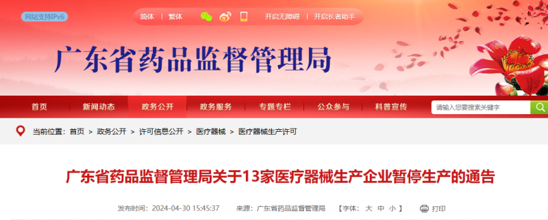 注意!廣東13家醫(yī)療器械生產(chǎn)企業(yè)暫停生產(chǎn)