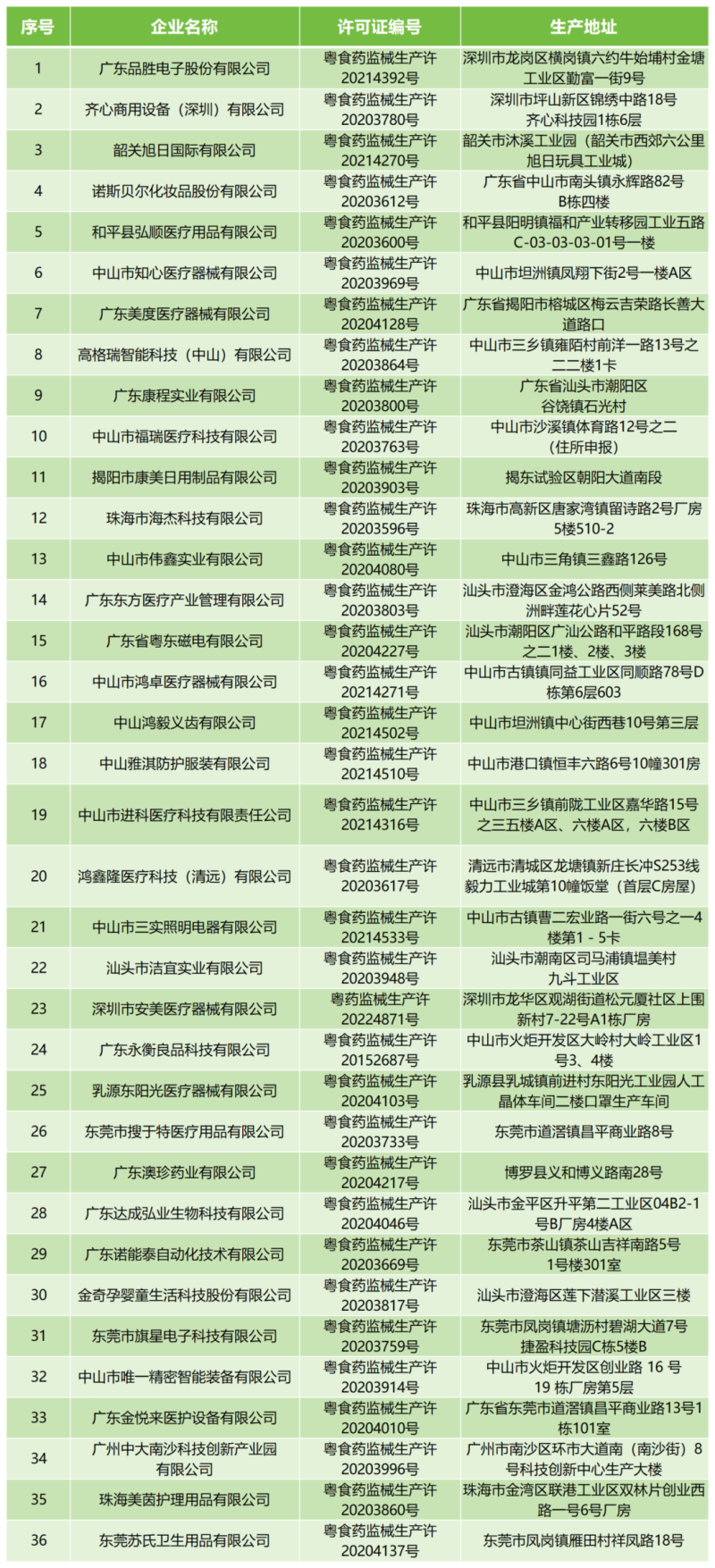 廣東藥監(jiān)局:以下36家企業(yè)已主動(dòng)注銷其醫(yī)療器械生產(chǎn)許可證!