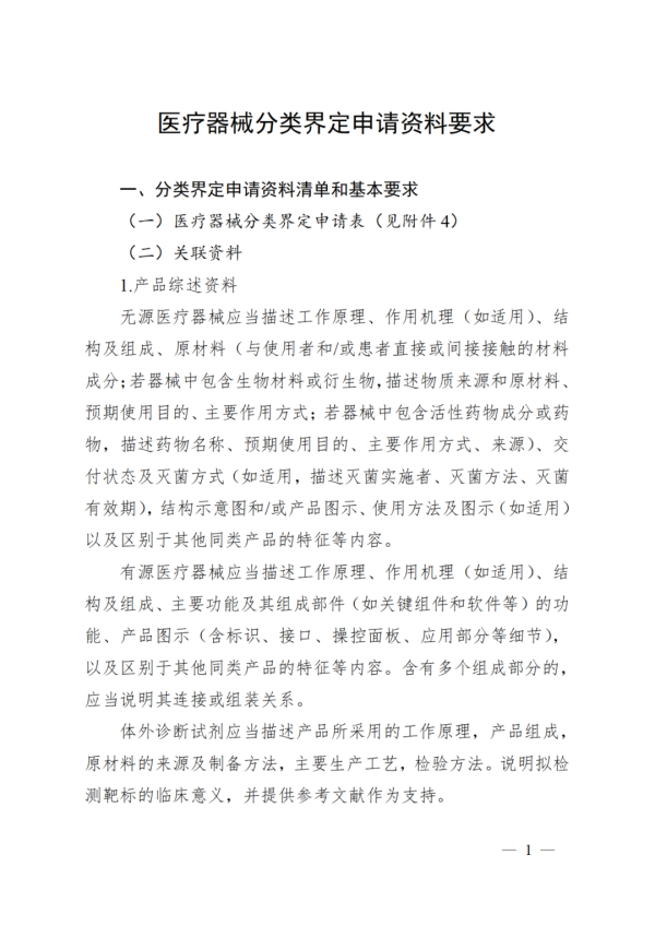 ↑ 醫(yī)療器械分類(lèi)界定申請(qǐng)資料要求