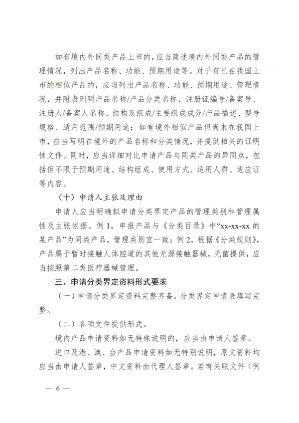 (二)申請(qǐng)人應(yīng)當(dāng)依據(jù)《條例》《辦法》《分類(lèi)規(guī)則》、相關(guān)分類(lèi)界定指導(dǎo)原則及《分類(lèi)目錄》等判定產(chǎn)品管理屬性和類(lèi)別。對(duì)新研制的尚未列入《分類(lèi)目錄》的醫(yī)療器械,申請(qǐng)人可以直接申請(qǐng)第三類(lèi)醫(yī)療器械產(chǎn)品注冊(cè),也可以依據(jù)《分類(lèi)規(guī)則》判斷產(chǎn)品類(lèi)別并申請(qǐng)分類(lèi)界定后,申請(qǐng)產(chǎn)品注冊(cè)或者辦理產(chǎn)品備案。
