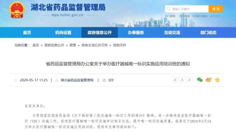 湖北藥監(jiān)局:5月24日舉辦醫(yī)療器械唯一標(biāo)識實施應(yīng)用培訓(xùn)班