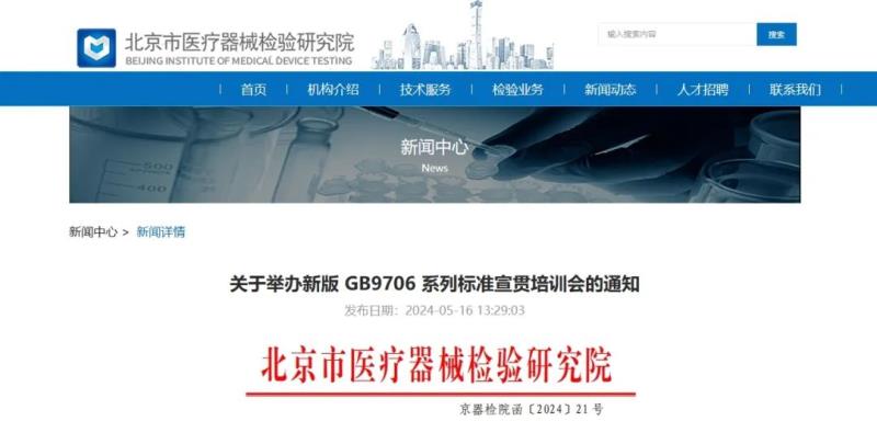 近日,北京市醫(yī)療器械檢驗研究院發(fā)布通知稱,該院定于2024年5月30日舉辦新版GB 9706系列標準線上宣貫培訓會,培訓內(nèi)容包括GB 9706.1-2020《醫(yī)用電氣設備 第1部分:基本安全和基本性能的通用要求》、YY 9706.108-2021《醫(yī)用電氣設備 第1-8部分:基本安全和基本性能的通用要求 并列標準:通用要求,醫(yī)用電氣設備和醫(yī)用電氣系統(tǒng)中報警系統(tǒng)的測試和指南》、YY 9706.111-2021《醫(yī)用電氣設備 第1-11部分:基本安全和基本性能的通用要求并列標準:在家庭護理環(huán)境中使用的醫(yī)用電氣設備和醫(yī)用電氣系統(tǒng)的要求》等。培訓具體事項如下: