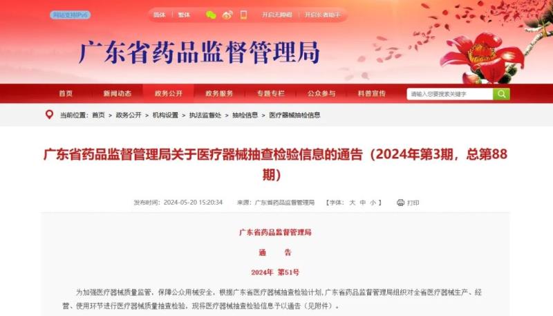 廣東藥監(jiān)局:以下醫(yī)療器械產(chǎn)品抽檢不合格!