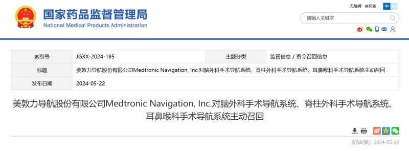 美敦力導(dǎo)航股份有限公司近期宣布對其生產(chǎn)的腦外科手術(shù)導(dǎo)航系統(tǒng)、脊柱外科手術(shù)導(dǎo)航系統(tǒng)以及耳鼻喉科手術(shù)導(dǎo)航系統(tǒng)進(jìn)行一級召回,意味著它們可能存在嚴(yán)重的安全風(fēng)險(xiǎn),需要立即采取行動以減少可能的傷害。