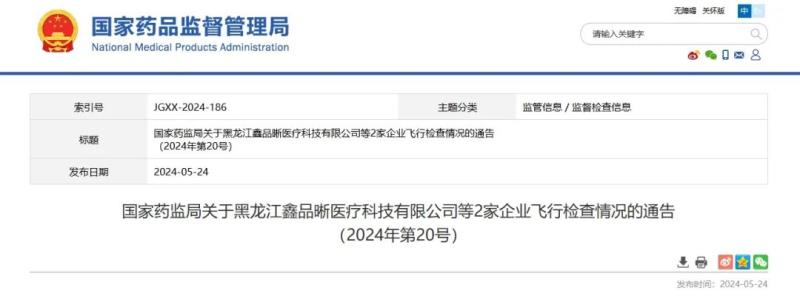 5月24日,國(guó)家藥監(jiān)局發(fā)布通告稱,近期組織對(duì)黑龍江鑫品晰醫(yī)療科技有限公司、三原富生醫(yī)療器械有限公司2家企業(yè)進(jìn)行飛行檢查,發(fā)現(xiàn)這些企業(yè)質(zhì)量管理體系主要存在以下缺陷: