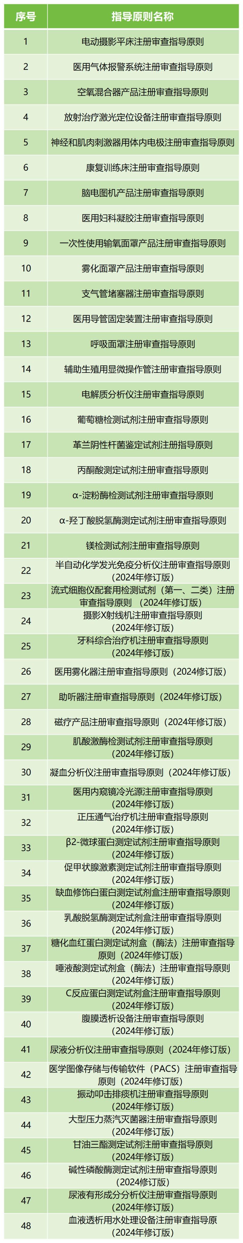 5月27日,國家藥監(jiān)局器審中心發(fā)布《康復(fù)訓(xùn)練床注冊(cè)審查指導(dǎo)原則》《霧化面罩產(chǎn)品注冊(cè)審查指導(dǎo)原則》《神經(jīng)和肌肉刺激器用體內(nèi)電極注冊(cè)審查指導(dǎo)原則》等48項(xiàng)注冊(cè)審查指導(dǎo)原則,其中21項(xiàng)為新制定,27項(xiàng)為修訂,修訂了指導(dǎo)原則的有牙科綜合治療機(jī)、醫(yī)用霧化器、助聽器、磁療產(chǎn)品、PACS軟件等產(chǎn)品,具體明細(xì)如下: