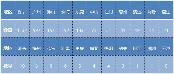 ↑ 表 4  各地市新增第二類醫(yī)療器械注冊證情況(單位:張)