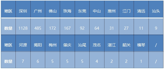 2023年,廣東省第二類醫(yī)療器械注冊申請受理各地市分布情況見表1。