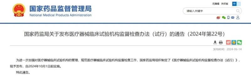 近日,國家藥監(jiān)局組織發(fā)布《醫(yī)療器械臨床試驗(yàn)機(jī)構(gòu)監(jiān)督檢查辦法(試行)》(以下簡稱《辦法》),并宣布自2024年10月1日起實(shí)施。