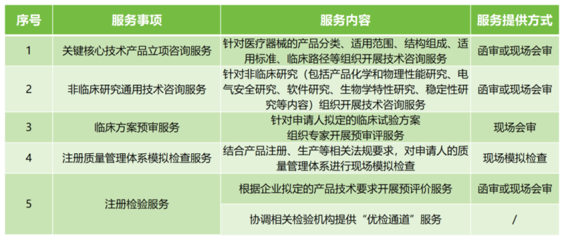 廣州市醫(yī)療器械創(chuàng)新技術(shù)服務(wù)事項(xiàng)包括以下五種類型: