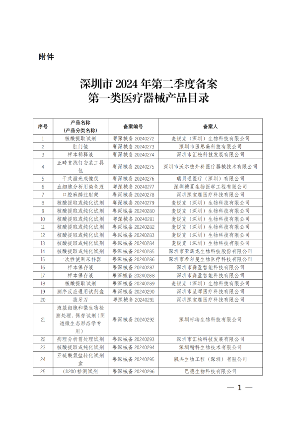 近日,深圳市市場(chǎng)監(jiān)督管理局公布了2024年第二季度備案的第一類(lèi)醫(yī)療器械產(chǎn)品目錄,共計(jì)有183個(gè)產(chǎn)品,以體外診斷試劑類(lèi)產(chǎn)品居多,具體如下: