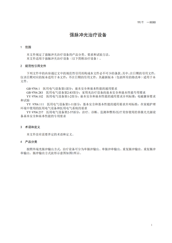 ↑《強脈沖光治療設備》行業(yè)標準征求意見稿