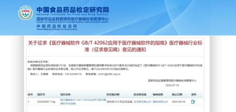 近日,國家藥監(jiān)局醫(yī)療器械標準管理中心發(fā)布《醫(yī)療器械軟件 GB/T 42062應(yīng)用于醫(yī)療器械軟件的指南》醫(yī)療器械行業(yè)標準的征求意見稿,用以代替YY/T 1406.1-2016《醫(yī)療器械軟件 第1部分:YY/T 0316應(yīng)用于醫(yī)療器械軟件的指南》,并向社會公開征求意見。