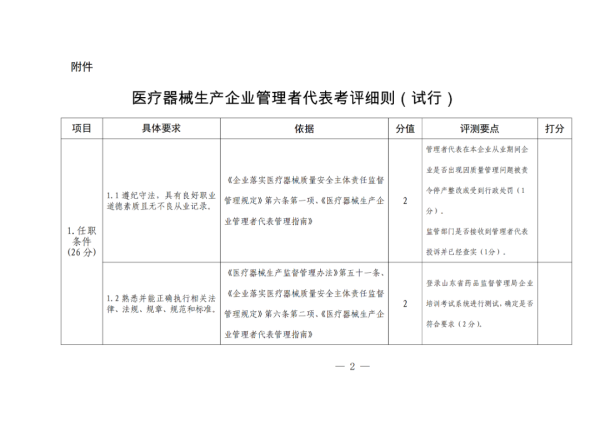 近日,山東省藥監(jiān)局發(fā)布《醫(yī)療器械生產(chǎn)企業(yè)管理者代表考評細則(試行)》(以下簡稱《細則》),并向社會公開征求意見建議。