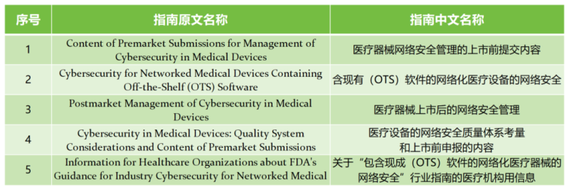 了解完需要遞交網(wǎng)絡(luò)安全文件的情形,我們整理了FDA發(fā)布的部分與網(wǎng)絡(luò)安全有關(guān)的(包括上市前和上市后)指南文件,以供大家參考: