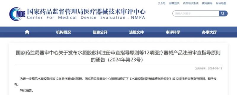 8月12日,國家藥監(jiān)局器審中心發(fā)布《水凝膠敷料注冊審查指導(dǎo)原則》《透析液過濾器注冊審查指導(dǎo)原則》《一次性使用靜脈留置針注冊審查指導(dǎo)原則》等12項醫(yī)療器械注冊審查指導(dǎo)原則,具體清單如下: