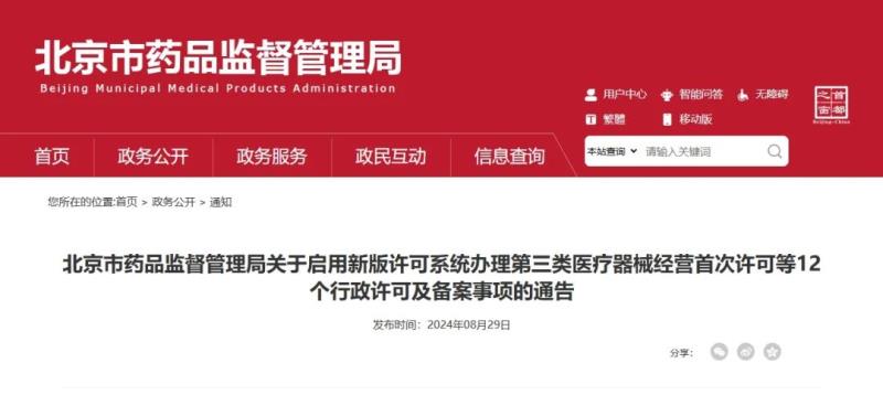 9月1日起,北京第一類器械生產(chǎn)備案等使用新版許可系統(tǒng)辦理