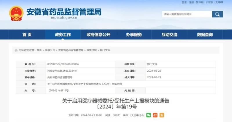 近日,安徽省藥監(jiān)局發(fā)布通告稱,為進一步落實 《醫(yī)療器械生產(chǎn)監(jiān)督管理辦法》 (國家市場監(jiān)督管理總局令第53號)關(guān)于醫(yī)療器械注冊人委托生產(chǎn)事項報告相關(guān)要求,加強醫(yī)療器械注冊人委托生產(chǎn)及受托生產(chǎn)企業(yè)管理,推進醫(yī)療器械全生命周期數(shù)字化管理,該局開發(fā)了“安徽省藥品監(jiān)管企業(yè)端-醫(yī)療器械委托/受托生產(chǎn)上報模塊” (以下簡稱“上報模塊”)。現(xiàn)就啟用上報模塊有關(guān)事項通告如下:
