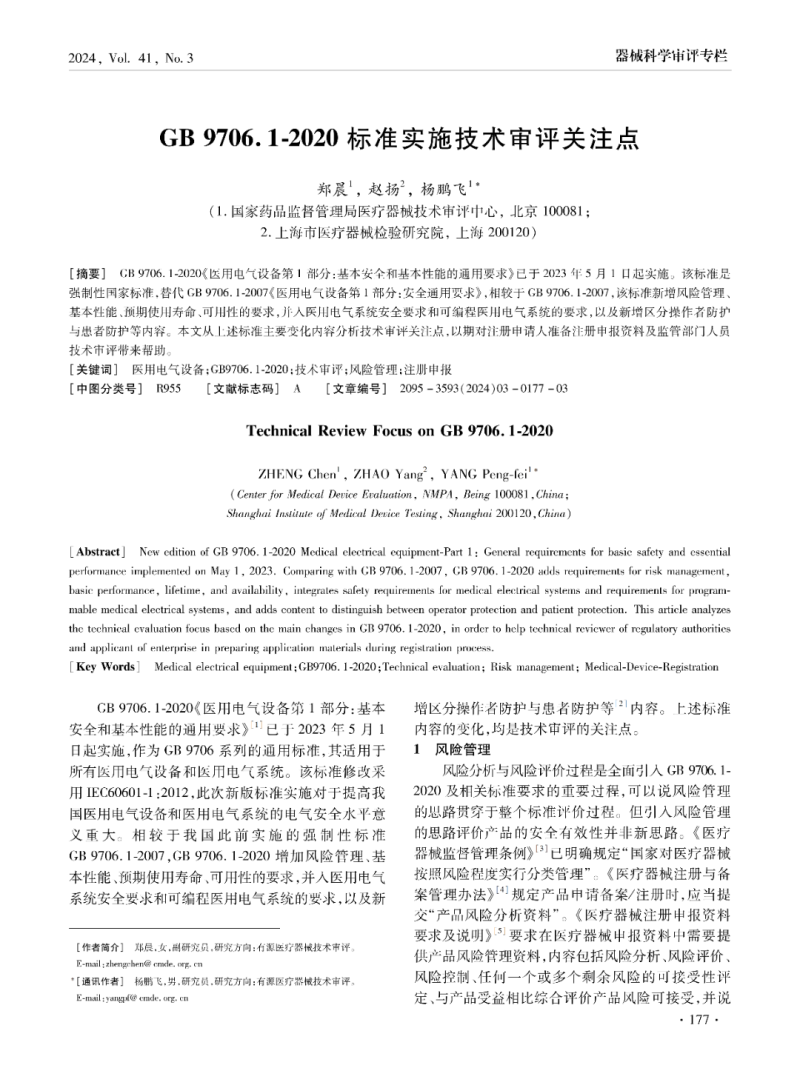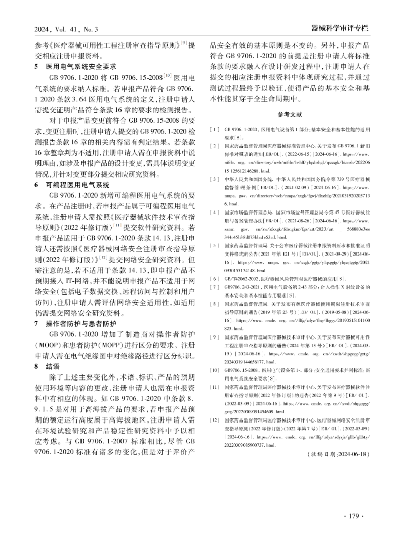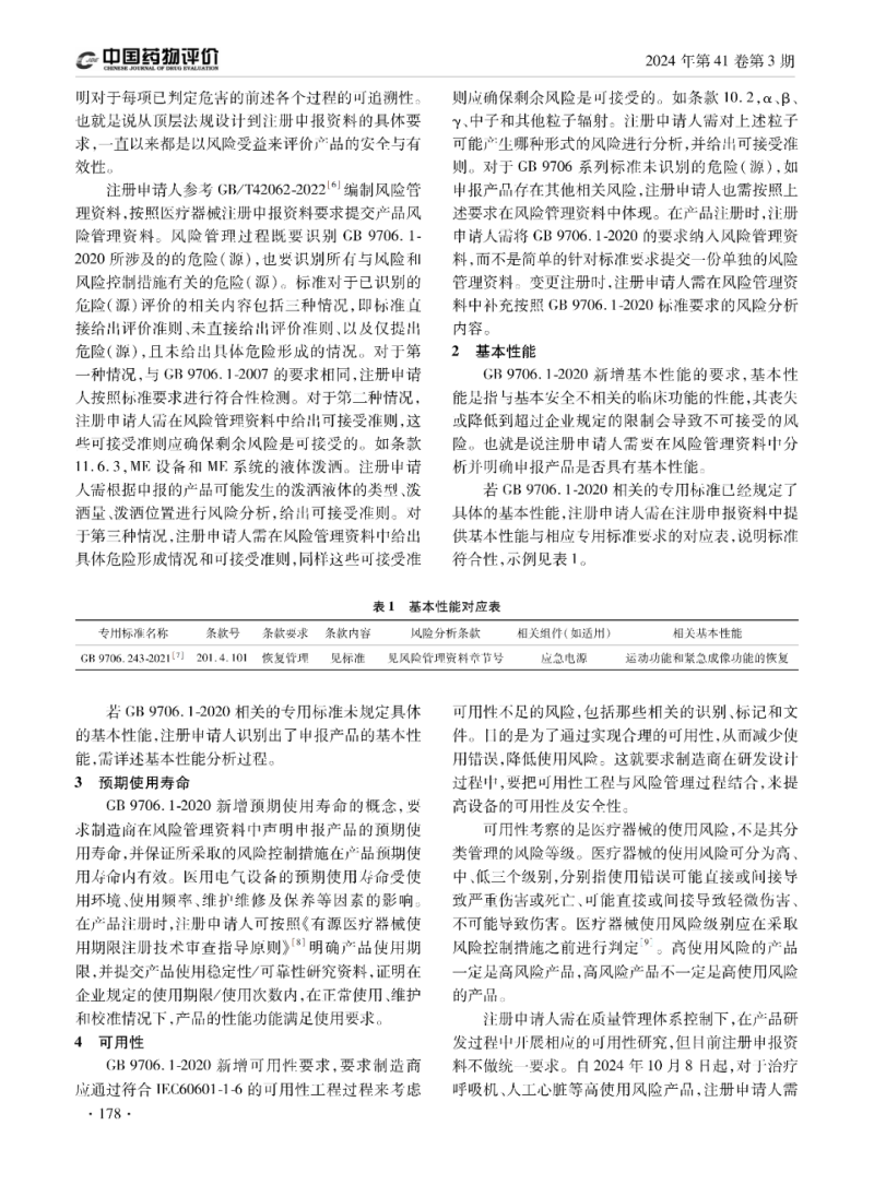 GB 9706.1-2020《醫(yī)用電氣設(shè)備第1 部分:基本安全和基本性能的通用要求》已于2023年5月1日起實(shí)施。該標(biāo)準(zhǔn)是強(qiáng)制性國(guó)家標(biāo)準(zhǔn),替代GB 9706.1-2007《醫(yī)用電氣設(shè)備第1部分:安全通用要求》,相較于GB 9706.1-2007,該標(biāo)準(zhǔn)新增風(fēng)險(xiǎn)管理、基本性能、預(yù)期使用壽命、可用性的要求,并入醫(yī)用電氣系統(tǒng)安全要求和可編程醫(yī)用電氣系統(tǒng)的要求,以及新增區(qū)分操作者防護(hù)與患者防護(hù)等內(nèi)容。本文從上述標(biāo)準(zhǔn)主要變化內(nèi)容分析技術(shù)審評(píng)關(guān)注點(diǎn),以期對(duì)注冊(cè)申請(qǐng)人準(zhǔn)備注冊(cè)申報(bào)資料及監(jiān)管部門人員技術(shù)審評(píng)帶來(lái)幫助。