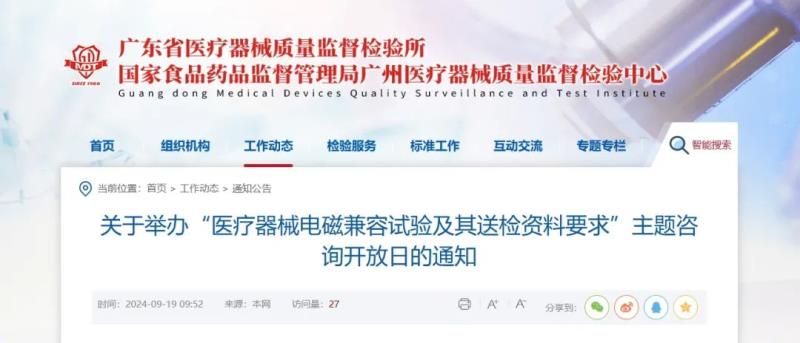 近日,廣東省醫(yī)療器械質(zhì)量監(jiān)督檢驗(yàn)所官網(wǎng)發(fā)布通知,定于9月26日(周四)舉辦“醫(yī)療器械電磁兼容檢驗(yàn)及其送檢資料要求”線上主題咨詢開(kāi)放日活動(dòng),具體時(shí)間及參會(huì)方式如下: