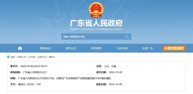 10月9日,廣東省人民政府發(fā)布《關(guān)于進一步推動廣東生物醫(yī)藥產(chǎn)業(yè)高質(zhì)量發(fā)展的行動方案》(以下簡稱《方案》),其中提到,力爭到2027年,廣東省生物醫(yī)藥與健康產(chǎn)業(yè)集群規(guī)模超萬億元,規(guī)上醫(yī)藥工業(yè)規(guī)模超5000億元。《方案》全文內(nèi)容如下: