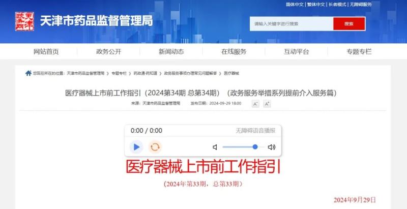 天津藥監(jiān)局:醫(yī)械產(chǎn)品注冊(cè)申報(bào)前可申請(qǐng)?zhí)崆敖槿敕?wù)!