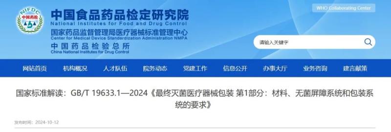 近日,中檢院官網發(fā)布了對國家標準GB/T 19633.1-2024《最終滅菌醫(yī)療器械包裝 第1部分:材料、無菌屏障系統(tǒng)和包裝系統(tǒng)的要求》的解讀,我們將其轉載如下: