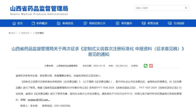 山西藥監(jiān)局擬明確定制式義齒首次注冊標準化申報資料